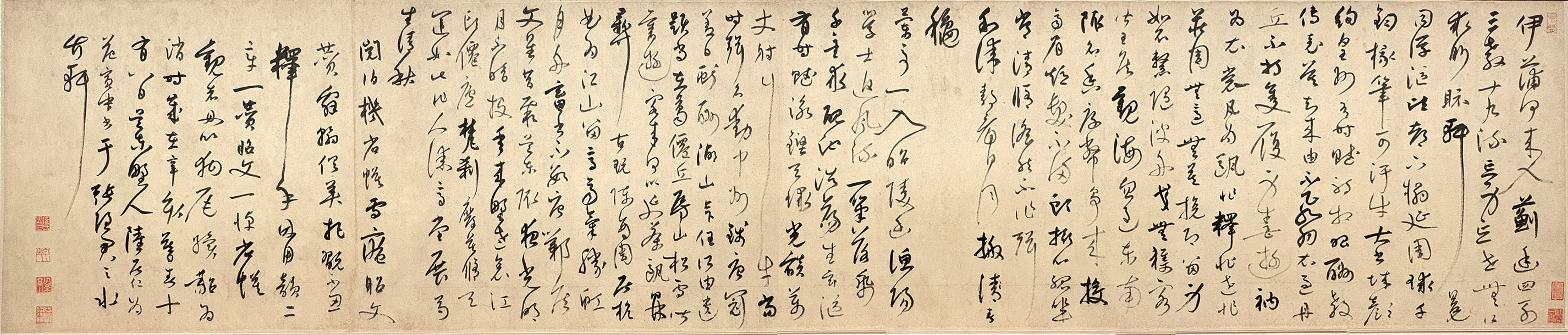 陆居仁《跋鲜于枢行草书诗赞卷》 纸本,手卷,草书,纵42.7厘米,横205.8厘米。上海博物馆藏。