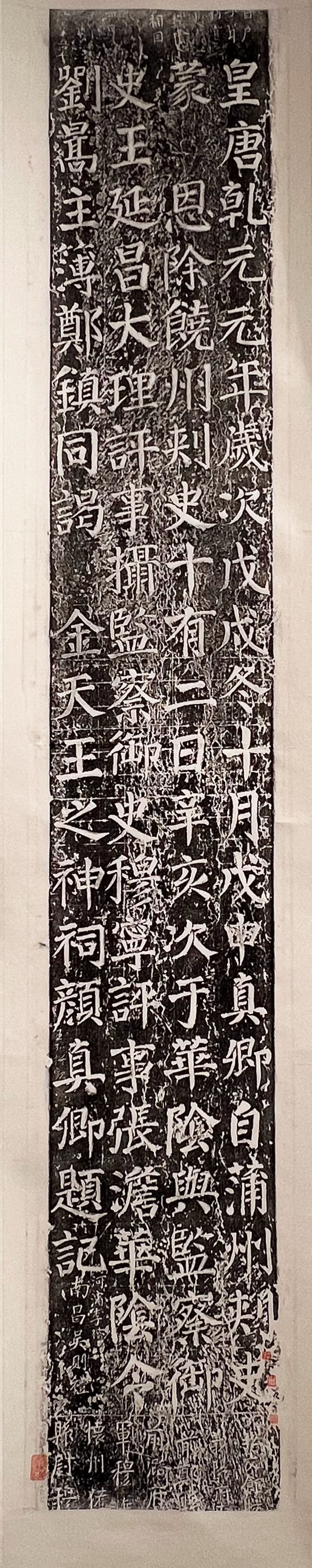 颜真卿《谒金天王神祠题记》墨拓 楷书 247×35cm 乾元元年(758年) 陕西汉唐石刻博物馆藏