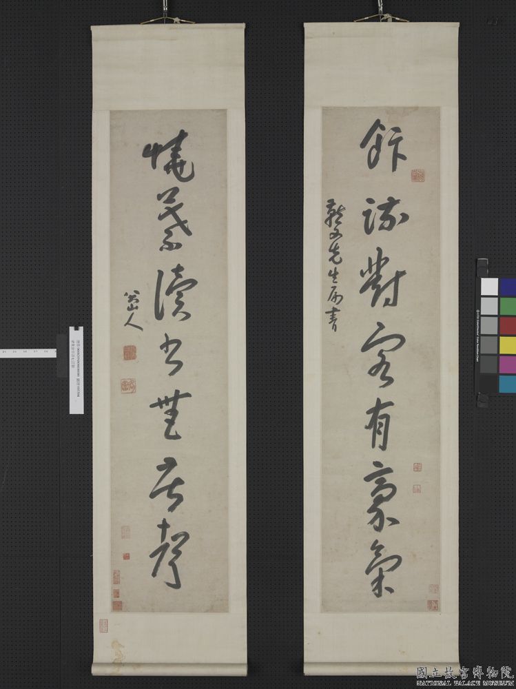 朱耷《草书饭疏烧叶七言联》纸本草书 120.8×28.4cm×2 台北故宫博物院藏