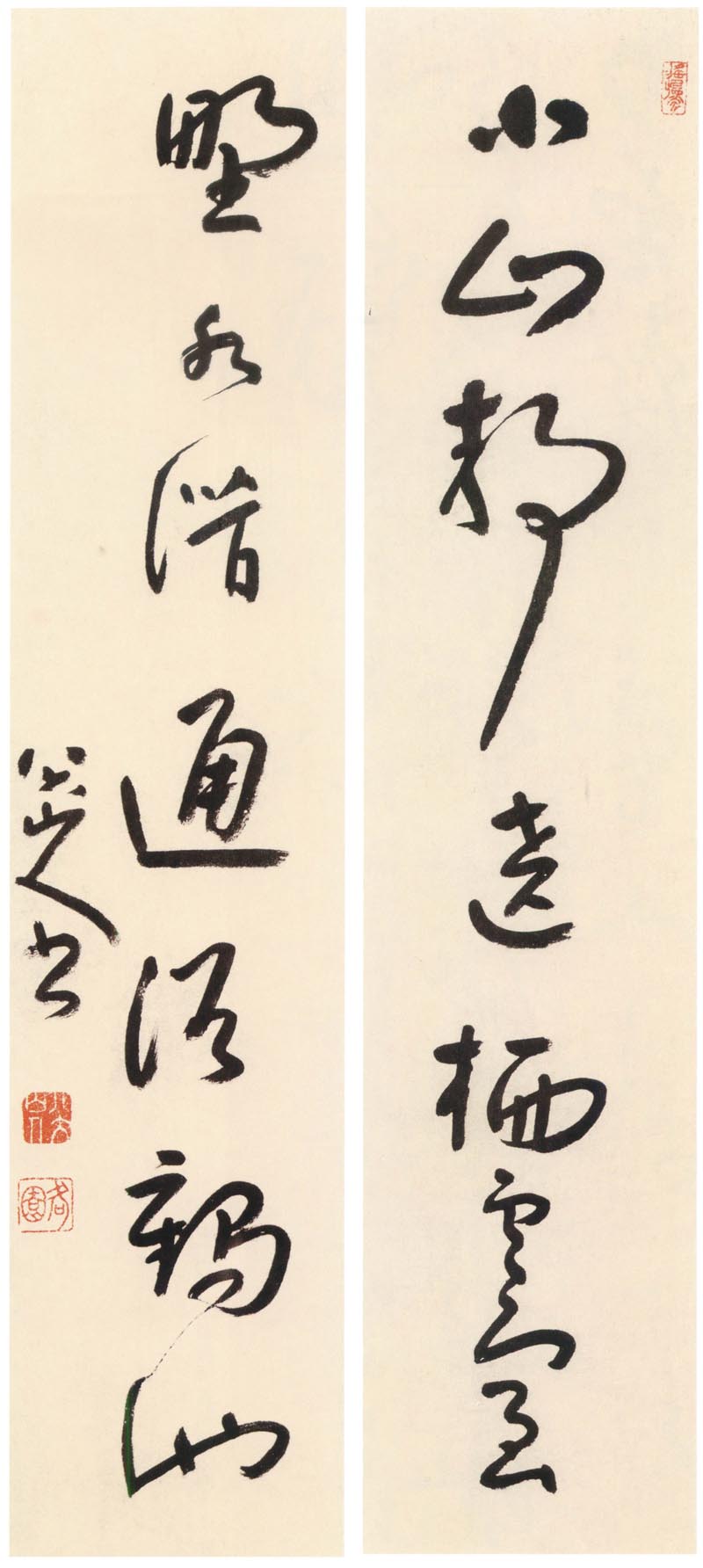 朱耷《草书小山野水七言联》纸本草书 105×23cm×2 苏州灵岩寺藏