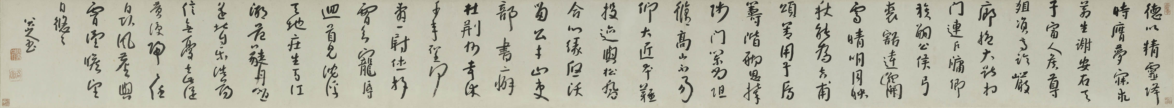 朱耷《行书高适五言诗卷》纸本行书 30.4×327.8cm。上海博物馆藏