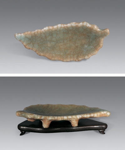 又称笔砚,用于验墨浓淡或理顺笔毫,常制成片状树叶形。