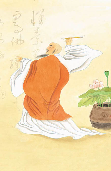 在草书艺术史上,怀素其人和他的《自叙帖》,从唐代中叶开始,一直为书法爱好者谈论了一千两百多年。怀素,十岁出家为僧,字藏真,俗姓钱,永州零陵(今湖南零陵)人。少时在经禅之暇,就爱好书法,贫穷无纸墨,他为练字种了一万多棵芭蕉,用蕉叶代纸。由于住处触目都是蕉林,因此风趣地把住所称为“绿天庵”。又用漆盘、漆板代纸,勤学精研,盘、板都写穿了,写坏了的笔头也很多,埋在一起,名为“笔冢”。 他性情疏放,锐意草书,却无心修禅,更饮酒吃肉,交结名士,与李白、颜真卿等都有交游。以“狂草”名世。唐代文献中有关怀素的记载甚多。“运笔迅速,如骤雨旋风,飞动圆转,随手万变,而法度具备”。王公名流也都爱结交这个狂僧。唐任华有诗写道:“狂僧前日动京华,朝骑王公大人马,暮宿王公大人家。谁不造素屏,谁不涂粉壁。粉壁摇晴光,素屏凝晓霜。待君挥洒兮不可弥忘,骏马迎来坐堂中,金盘盛酒竹叶香。十杯五杯不解意,百杯之后始颠狂。.......”前人评其狂草继承张旭又有新的发展,谓“以狂继颠”,并称“颠张醉素”。对后世影响极大。 怀素善以中锋笔纯任气势作大草,如“骤雨旋风,声势满堂”,到“忽然绝叫三五声,满壁纵横千万字”的境界。虽然如是疾速,但怀素却能於通篇飞草之中,极少失误。与众多书家家草法混乱缺漏相比,实在高明得多。是知怀素的狂草,虽率意颠逸,千变万化,终不离魏晋法度。这确实要归功他从极度苦修中得来。怀素传世的书迹较多:计有千字文、清净经、圣母帖、藏真帖、律公帖、脚气帖、自叙帖、苦笋帖、食鱼帖、四十二章经等。 就以上怀素作品加以研究,其风格并非全部相同,大到可分为三种: 一是尚未完全摆脱前人作风的:如圣母、食鱼、苦荀、藏真、诸帖,保留晋法甚多,圣母帖且多有颜真卿作风。二是他自成一家本领作风,如清净经、四十二章经、自叙帖(堪称标准的怀素书)。三是循和平澹的书风,如小草千字文,与其狂肆作风,大异其趣,完全换过一番面目,也可说是他过人之处。 怀素 (张广才 绘) 【作品欣赏】↑top 【相关文章】↑top | |