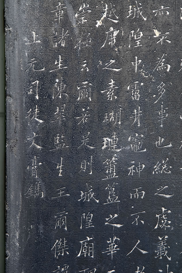 在碑文的书写上,板桥表现出了少有的恭敬与严谨,其时,他的“六分半书”已达炉火纯青之境,而这种带有隶意的字体,则可视作郑板桥晚年唯一传世的正楷佳作。清光绪年间陈恒庆所撰的《重修城隍庙碑记》中称赞说:“(郑板桥)碑文则光矞陆离,书则挺拔奇古,墨拓一帧值数千,海内争购之,几乎洛阳纸贵矣。”