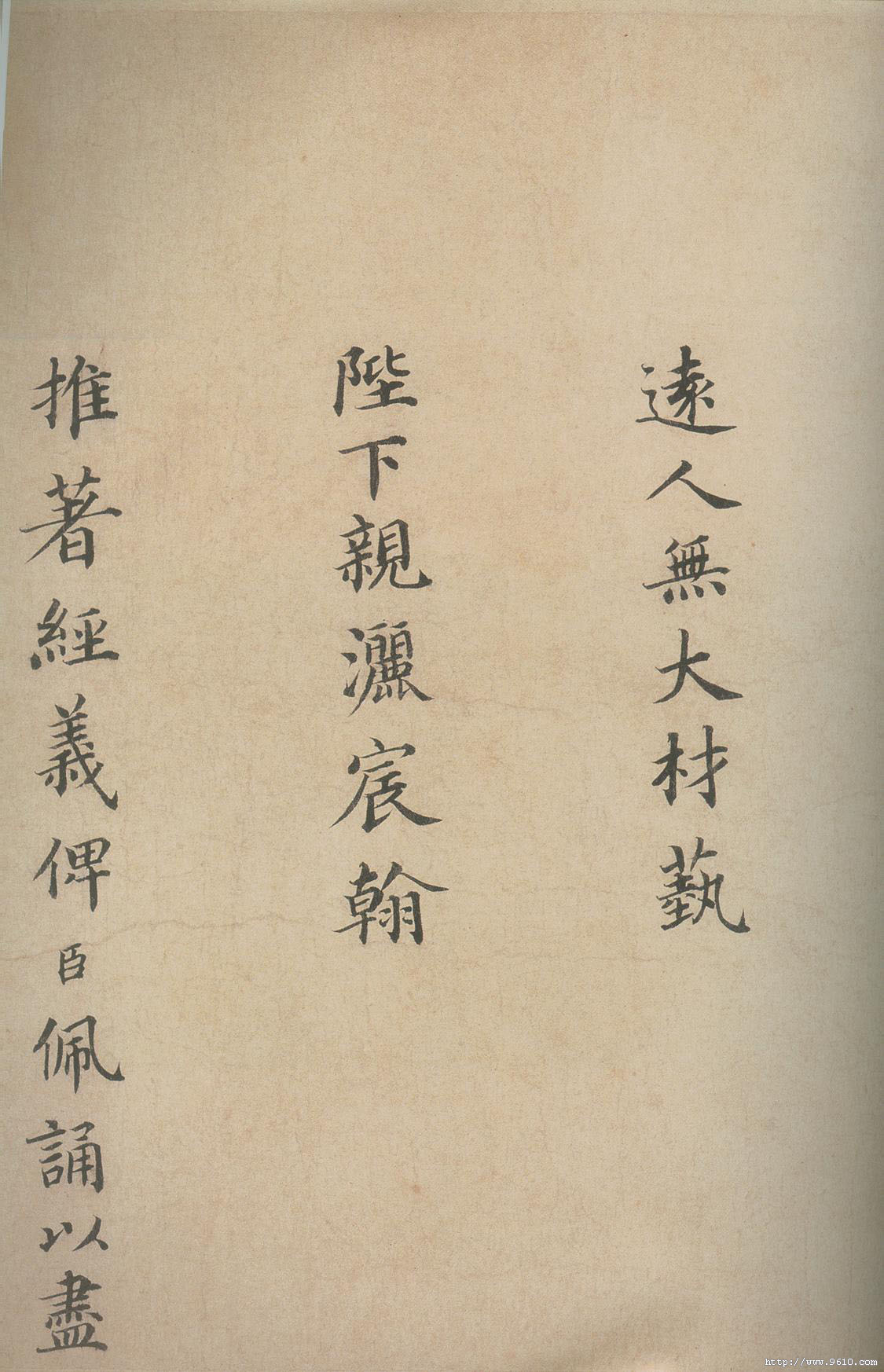 题跋四:蔡忠惠公书。名重当时。上尝令写大臣碑誌。则以例有资利辞。曰。此待詔职也。与待詔争利可乎。力不从。竟已。其人品如此。其书之庄重。凡落笔皆然。岂以御前表疏始不茍耶。谦斋宫傅先生。得此甚加珍惜。盖非特重其书。重其人也。长洲吴宽题。