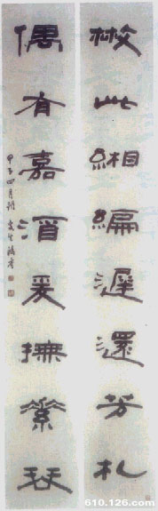 陈鸿寿于艺术涉猎广泛,而且造诣极高,为著名的“西泠八家”之一。他的篆刻出入秦汉,绘画精于山水、花卉,书法以隶书最为著名。他的书法以隶书和行书最为知名。他的隶书清劲潇洒,结体自由。穿插挪让,相映成趣,在当时是一种创新的风格。他广泛学习汉碑,尤其善于从汉摩崖石刻中汲取营养,在用笔上形成了金石气十足、结体奇特的个人面目。笔画圆劲细插,如银画铁钩,意境萧疏简淡,雄浑瓷肆,奇崛老辣。陈鸿寿的隶书较之以往的隶书具有“狂怪”的特点,说明他有创新的勇气和才能,但在结字和章法上,用笔仍然属守古法,笔笔中锋,力透纸背。