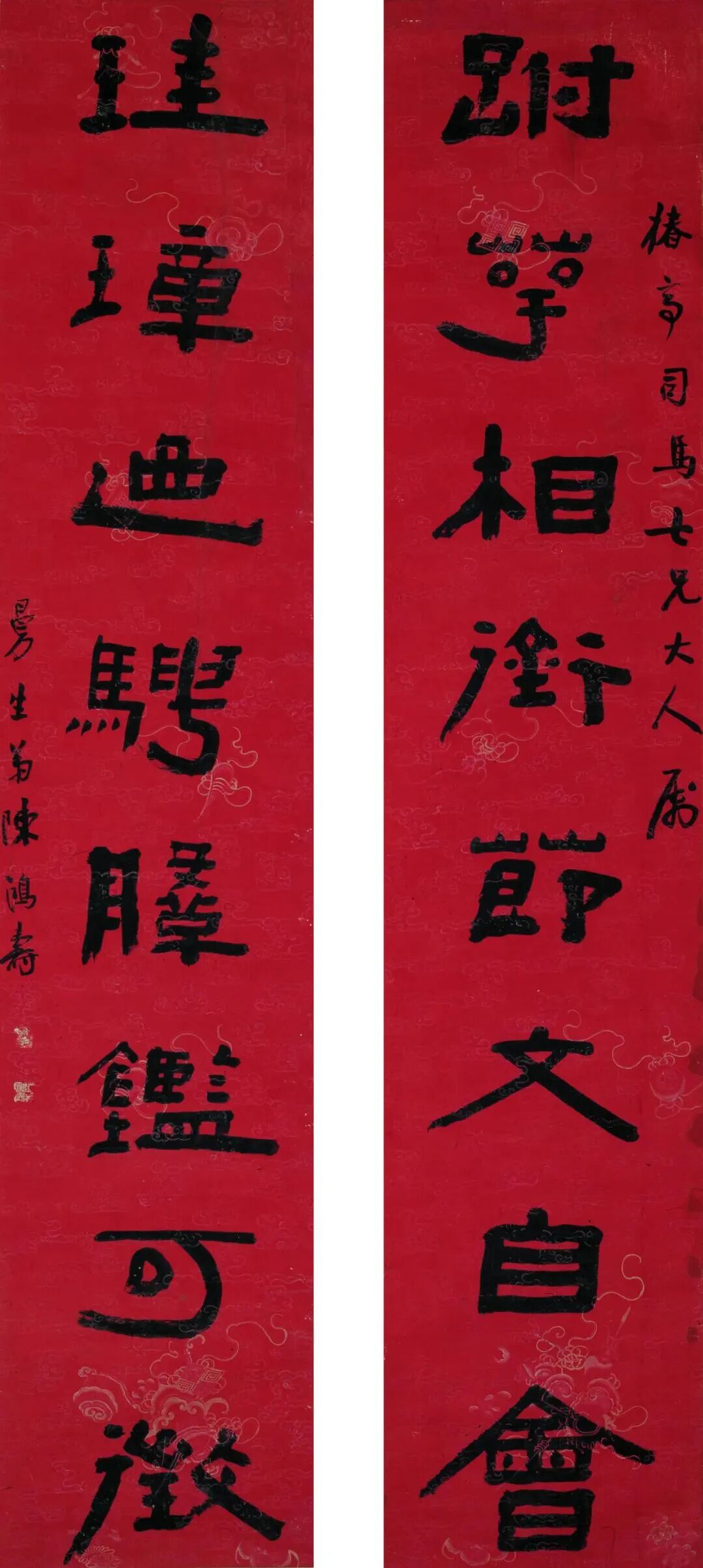 释文:跗萼相衔,节文自会;珪璋乃骋,鞶鉴可征。 款识:椿亭司马大兄大人属,曼生弟陈鸿寿。