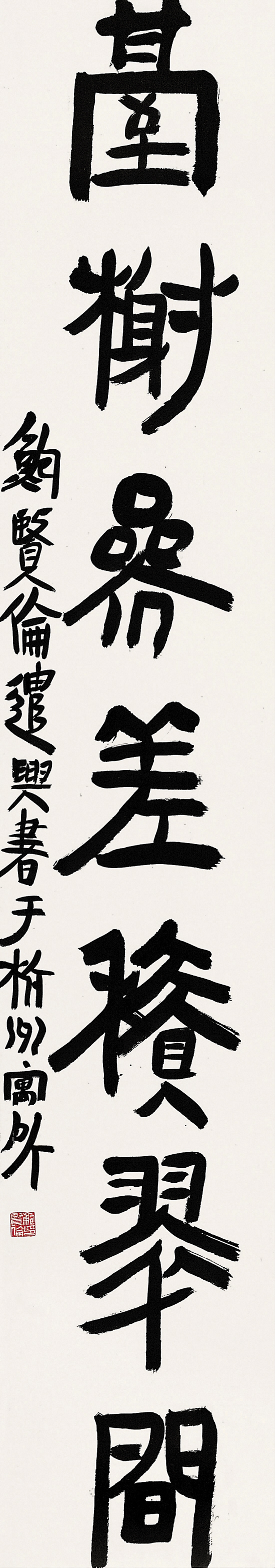 鲍贤伦 川原台榭七言联 隶书 纸本 178×32cm