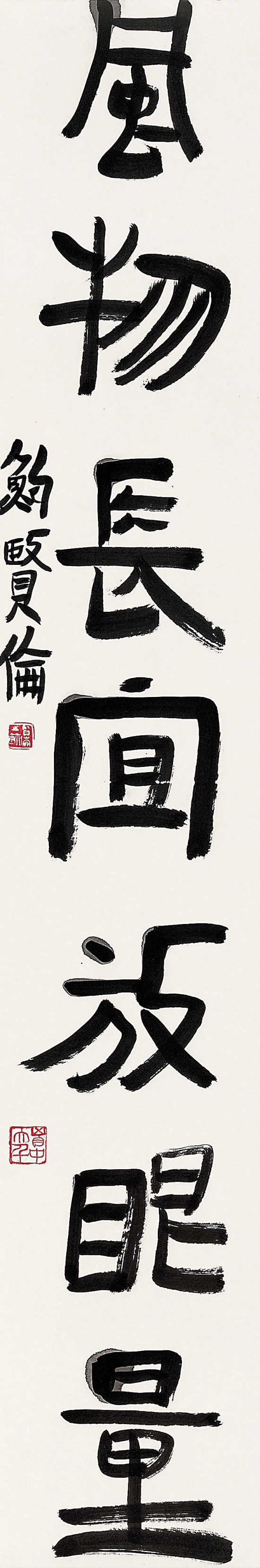 鲍贤伦 牢骚风物七言联 隶书 纸本 163×23cm