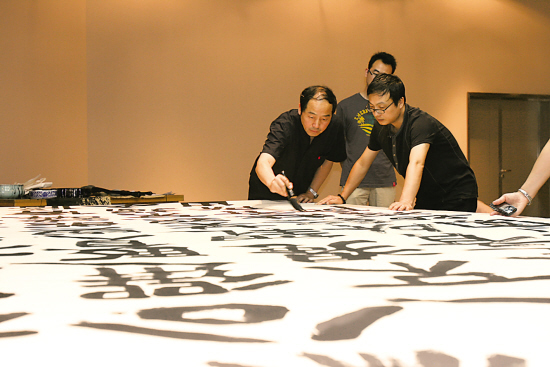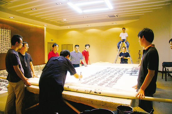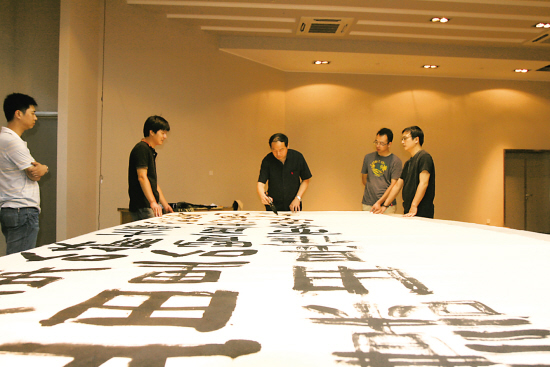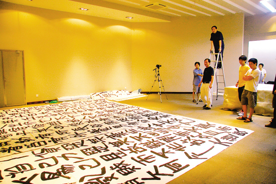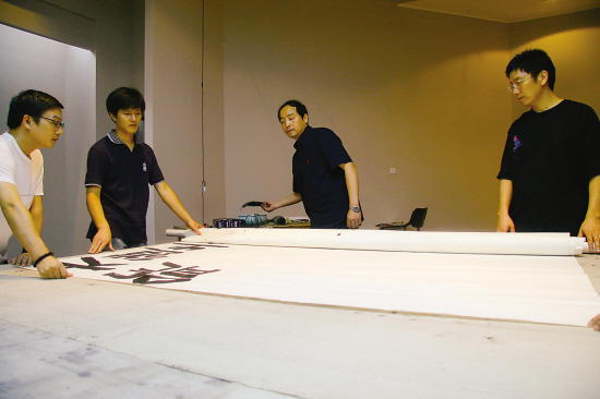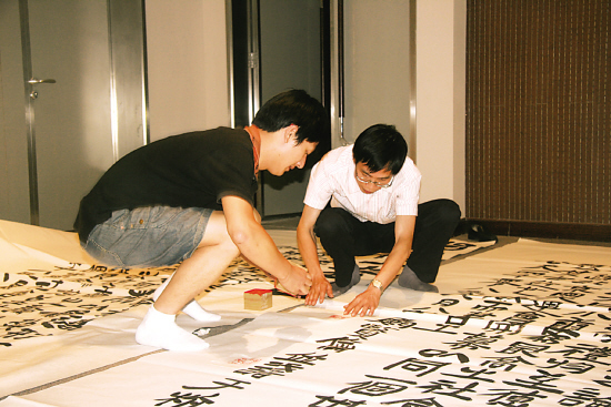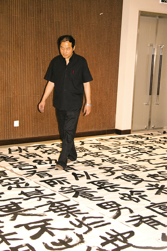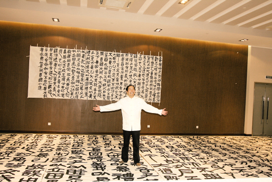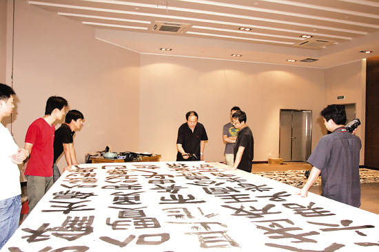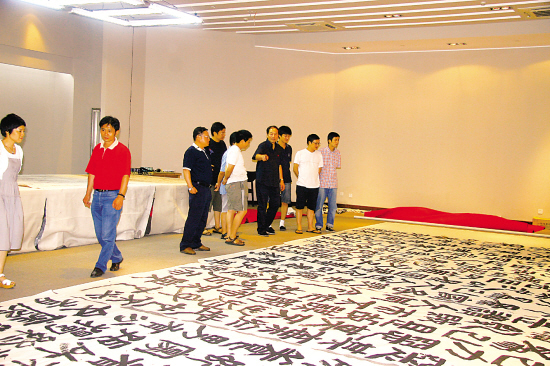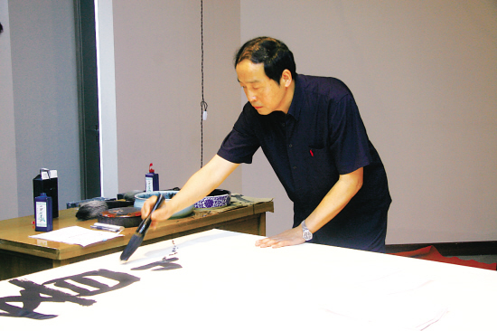鲍贤伦在《札记礼运篇大同小康论》创作现场 2008年8月8日