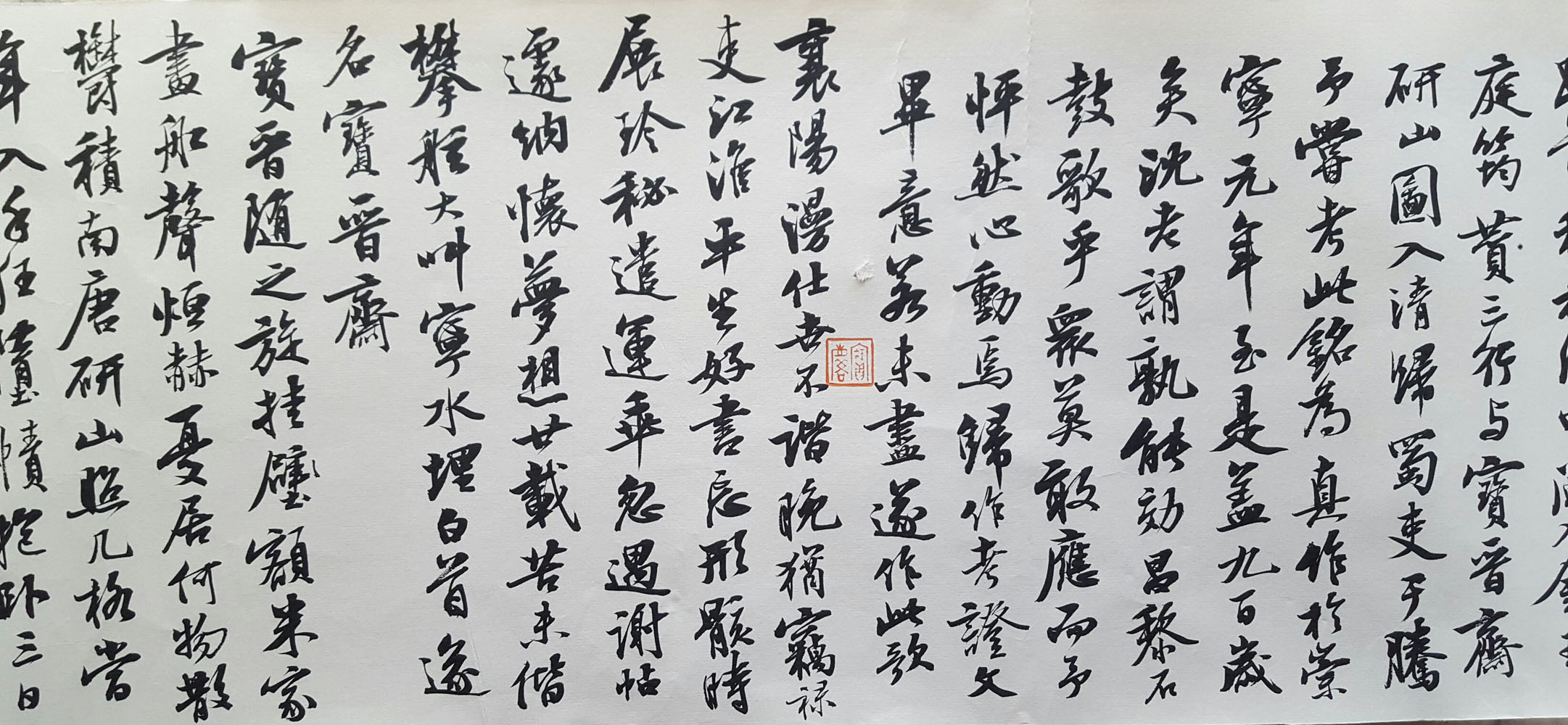 此为晏庐曹宝麟先生作《米襄阳研山铭归汉歌并序》。十四年前,先生于京师获睹宋代米芾《研山铭》真迹而作长诗一首,记述其事甚为周详完备。先生为当代米芾研究之权威,诗作中就《研山铭》的由来、变迁和转手情况一一考证,令人折服不已!诗句全为七言、讲求韵律之工、文句之整、意境之远,可称今人作骚赋之典!读此诗,亦可窥先生于诗学根基之深之厚!