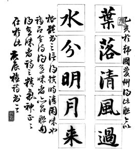 好一个“书法是一个黑白分明的美的世界”,这是对书法美的高度概括。美的世界产生美感,而美感是一个特殊的感情状态,一方面反映了人的感情状态的丰富性,另一方面也说明作为美感本源的客观存在事物之属性特征的丰富性。客观存在事物美的属性,不看其物质性,而在其物象,即在于客观存在事物的形象性。一切都是具体的,形象的,直观的,理性张力作为基础,起点、灵魂隐蔽其间,因此,美、美感才具有既朦胧又清晰,既模糊又鲜明,既可视又可见,时时处处能把握到,又说不清楚的特点。而艺术家——美的使者,才在这既艰难苦涩,又饶有趣味的事业中奋力跋涉着。宇宙间的事物各有各的美,而艺术家更偏好对他们进行不自觉的有意加工。所有艺术修养者,都能“自从一雨花零落,却爱微风草动摇”。