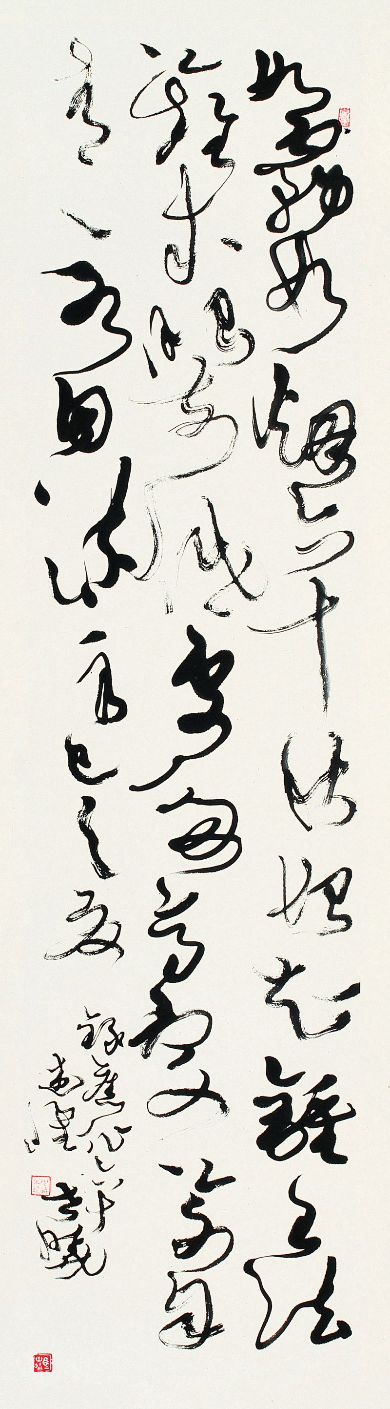 马世晓 《自作诗六十述怀大草轴》 137cm×35cm 【释文】如雾如烟六十秋,始知锺王法难求。眼前低处多高处,草自青青水自流。录旧作六十述怀,世晓。