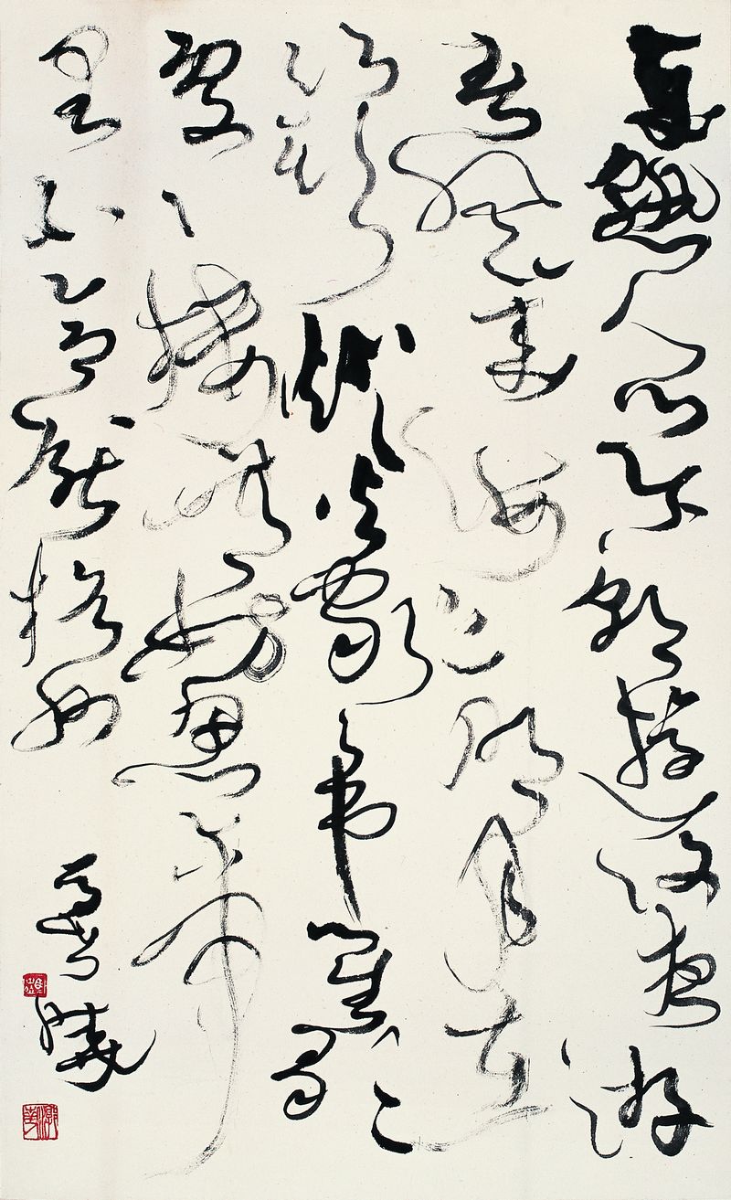 马世晓《草书白居易诗一首》 97cm×60cm 【释文】岁熟人心乐,朝游复夜游。春风来海上,明月在江头。灯火家家市,笙歌处处楼。无妨思帝里,不合厌杭州。 马世晓。