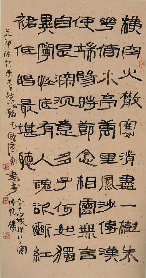 欧广勇以书名世,能画能诗、能篆刻,书法朴拙雄浑,大气磅礡,自成一体,具有强烈的视觉冲击力和情绪感染力。书法理论家邱振中教授在广勇书展前言中说:“碑学现代进展的一个趋势,是与帖学某种程度的交融,但避开帖学的道路,始终在碑学规范内发掘新意,为另一思路,欧广勇即为这一类创作实践的代表者。”