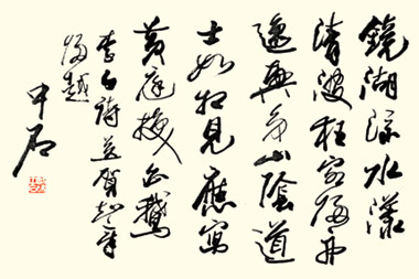 欧阳中石平易近人、和蔼可亲。他每次应邀参加书法培训班或各种书学活动,都欣然给大家传授书学知识和书写技法,不厌其烦地教导大家要道技并修。他的书法如其为人,格调清新高雅,沉着端庄,痛快不失俊逸,古朴而又华美。观他的作品,如欣赏高山流水,又如见万马奔腾,足见他无日不临池的深厚功力和勇于创新的精神。由于他的作品为众多书法爱好者所喜爱,他已应邀出版了《欧阳中石书沈鹏诗词选》、《中石夜读词钞》、《当代名家楷书谱·朱子家训》、《中石钞读清照词》、《老子〈道德经〉》等众多作品集。(左图均为欧阳中石书法作品)