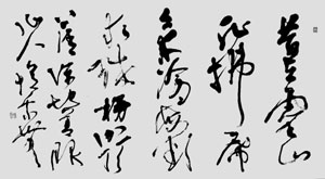 最后,再谈一谈邱振中的书法创作。从他这里的两幅作品可明显看出他于传统领域的扎实功底和对时代个性的把握能力。从作品的整体气格和神韵上考虑,亦不难发现邱振中对颜书楷、行两种书体的系统深研及体悟。邱振中的书法,无论楷行,抑或草隶,行笔一任天成是其艺术创作的明显基调。同时,在心迹外化的笔墨形式表现上,其作品形成多能在古拙、厚重之间兼得“灵通”二字。当然,就整个创作而论,邱振中书法成就最高者当是他的行草书。确实,于行草书的笔墨表现上,邱振中取法甚众,于晋唐各大家艺术优游日久,且于张旭、怀素二家得益尤多,故此,其行草书的整体风格在笔墨气韵上能以帖学之格取胜,同时又能兼蓄碑法之硬朗。 (本文转自《中国书画报》)