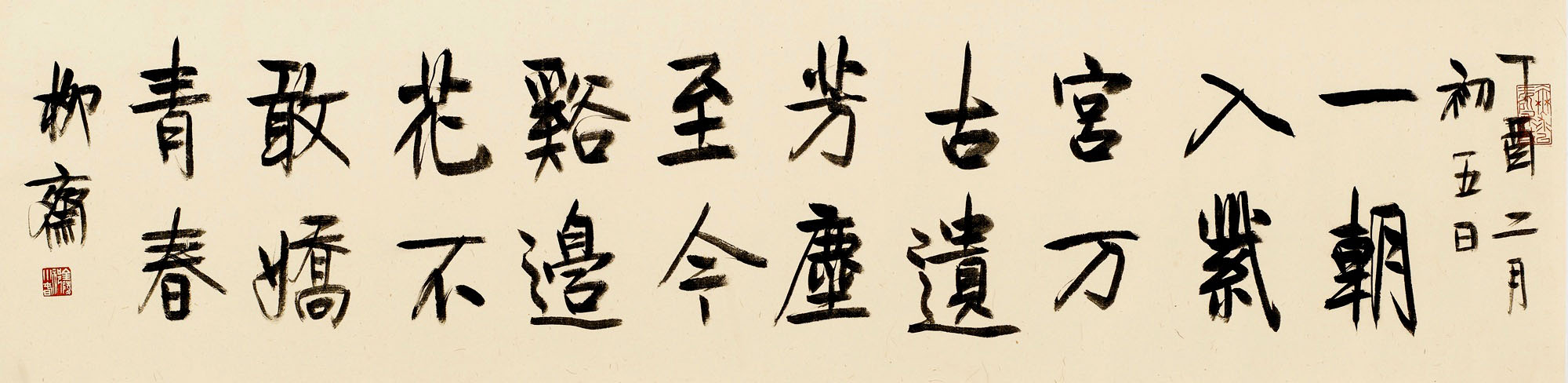释文:一朝入紫宫,万古遗芳尘。 至今溪边花,不敢娇青春。(胡幽贞题西施浣纱石)