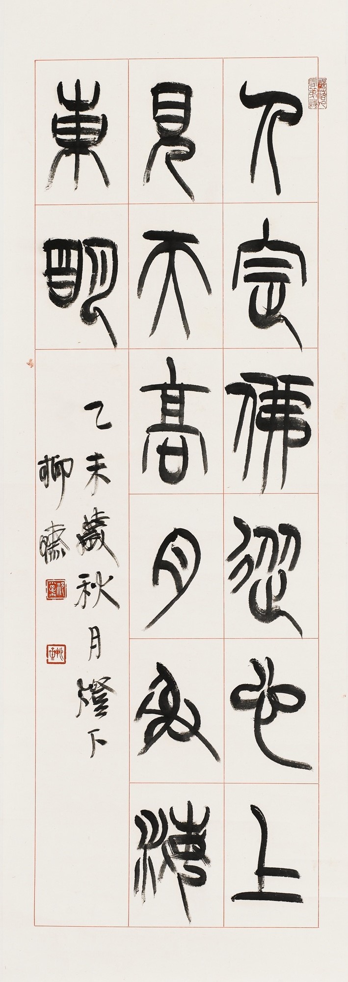 祁小春 篆书人定天高七言联句轴