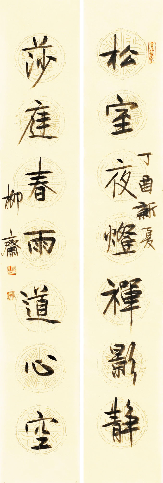 祁小春 楷书松室莎庭七言联