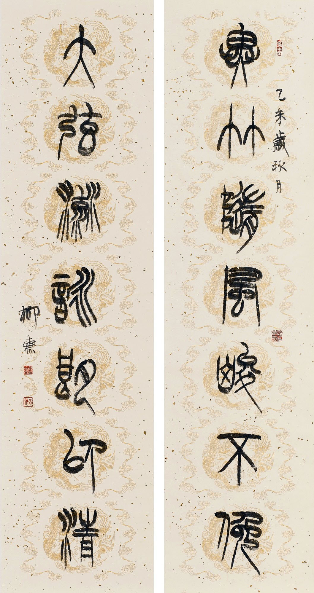 祁小春 篆书《异竹大弦七言联》