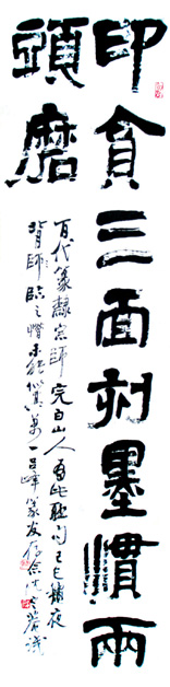 隶书条幅 印贪三面刻 墨惯两头磨 120×33cm 1989年