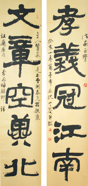 隶书五言联 文章空冀北 孝义冠江南 30×132cm×2 1983年