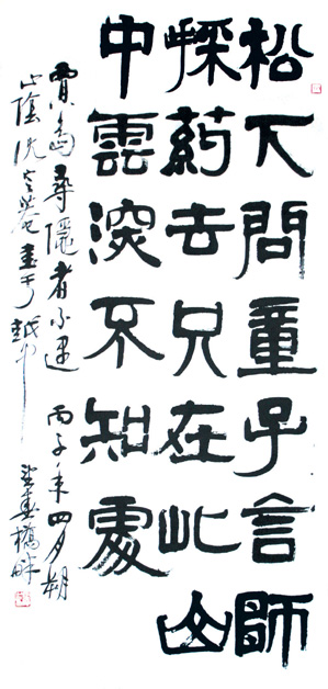 隶书立轴 唐贾岛《寻隐者不遇》 66×134cm 1996年