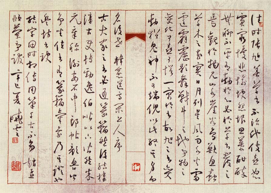 自从有了桌子以后,手有依凭了,“笔法”就渐渐失传了。宋代桌椅广泛使用,毛笔与阅读面垂直变成了与桌面垂直,定型于晋唐的“笔法”也发生了改变,代替“运指”,“运腕”出现了。发展到今天,本世纪出生的人,如没有笔法的承传,是完全不知道笔法,更何谈运用?很多情况下,书法常常是模拟、延续古人以转笔运指约定俗成的汉字造型和特有的笔画,即求形似,这就是“画字”。正因为大家都不明白“笔法”是怎么回事了,“笔法”常常会被神秘化。