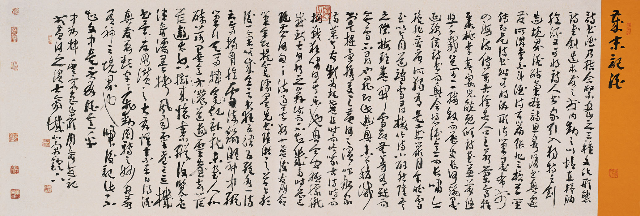 诗、书创造本发之于内,动之以情,直抒胸臆;酒,又可将诗人、书家引入独特的创造境界,酒酣气雄、诗思泉涌、书兴遽发,所谓“李白斗酒诗百篇”、“张旭三杯草圣传”即是。诗、书则可将酒形诸笔墨、布于四海、流传万古、脍炙人口。至若兰亭雅集、桃李春宴、兕觥既倾、诗书兼美、悠悠千载,岂可一一缕叙?而历史长河,翰墨延绵,借诗书而兴会,凭酒意而长啸,亦绝非晋唐所独有。
