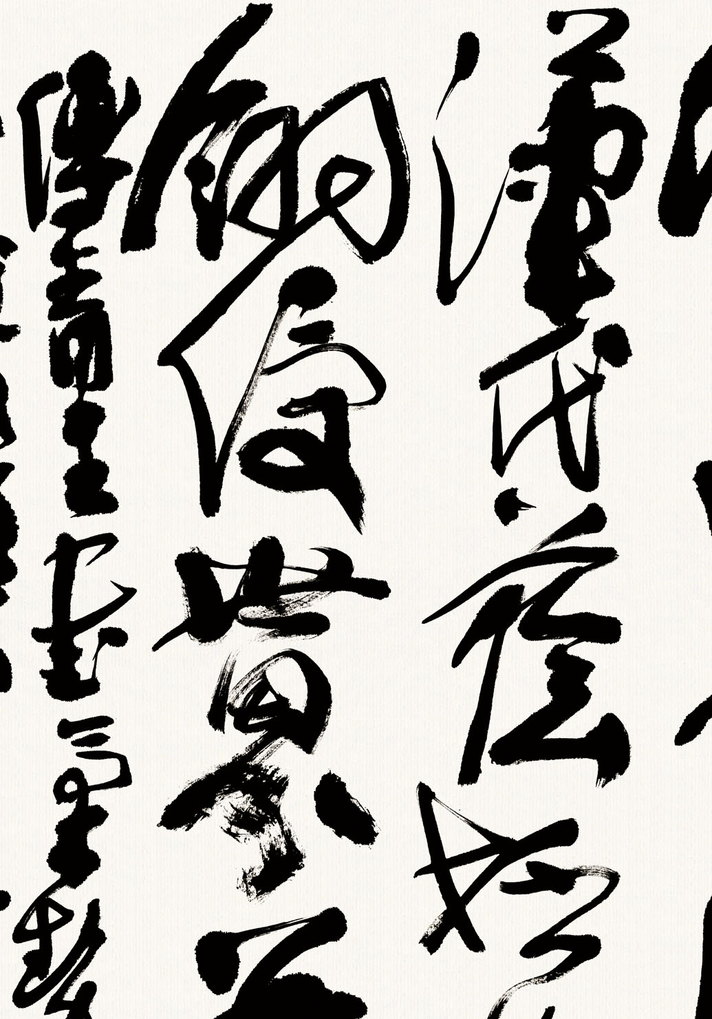 乾坤惟此事,不论古于今。 一盏酡双白,三春草寸心。 中山兔笔在,大醉浑沦寻。 俭食中丞旧,家声汉代荫。 杯深云月恋,綵舞雀翎侵。 世界兹难坏,和同涉入吟。 傅青主书气势宏阔,较孟津而过之。余橅之欲得其意,又杂以宿墨,以强化视觉效果,此乃余今后草书之主要追求也。中州挥云斋鲁岩周俊杰并记。 180cm×90cm (下为局部)