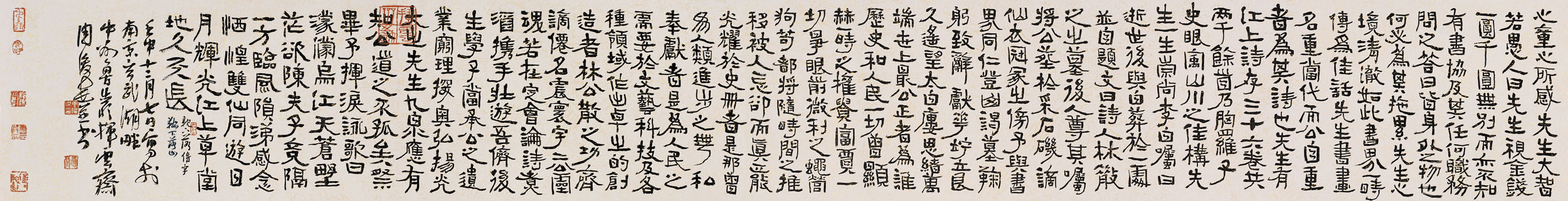 先生书画名重当代,而公自重者,为其诗也。先生有《江上诗存》三十六卷,共两千余首,乃“胸罗子史、眼寓山川”之佳构。先生一生崇尚李白,嘱曰,逝世后与白葬于一处,并自题碑文曰:“诗人林散之之墓”。后人遵其嘱,将公葬于采石矶谪仙衣冠冢之傍。予与书界同仁登山谒墓,鞠躬、致辞、献花,伫立良久。遥望太白楼,思绪万端:世上最公正者为谁?历史和人民!一切曾显赫一时之权贵、富贾,一切争眼前微利之蝇营狗苟,都将随时间之推移被人忘却,而真正能光耀于史册者,是那曾为人类进步之无私奉献者,是为人民之需要于文艺、科技及各种领域作出卓绝之创造者。林公散之,功齐谪仙,名震寰宇,二公灵魂若在,定会论诗煮酒,携手壮游。吾侪后生学子,当承公之遗业,穷理探奥,弘扬光大之。先生九泉应有知:公道之不孤矣!