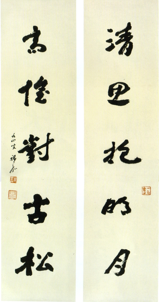 清思抱明月 高怀对古松 139 x 35cm 1992 祝嘉书学院藏