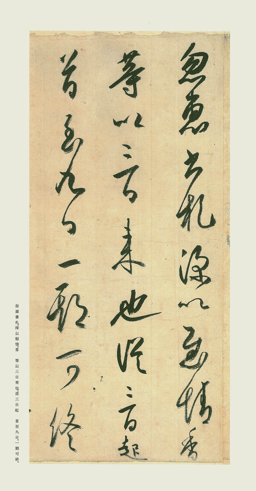 如前所述,空海在入唐前所受的奈良时代晋唐书风的熏陶和入唐后唐代书风的影响,对他书风的形成,起到了决定性的作用。《风信帖》是空海致最澄三通信札并为一卷的总称,是空海归回日本后最重要的书法代表作。据说原有书札五通,每一通各自独立,除现存三通以外,另外两通一通献给关白丰臣,一通失窃佚失。