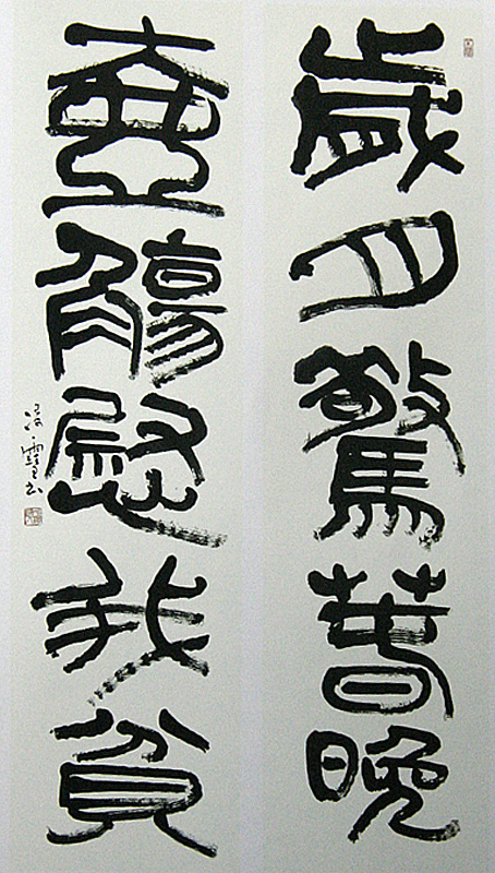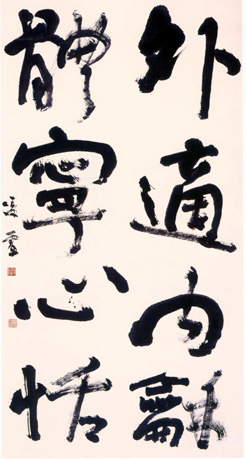 先生自少年时代始习书法, 在日本书法大师中谷釜双先生和辻本史邑先生的悉心指导下,从欧阳询入手、得唐楷谨严法度。后转学北魏诸碑刻,得奇肆朴拙浪漫之致。再学赵孟頫,改消北魏猛悍之习,使之归于平和圆润。然后广师明末清初诸家,人得其陶熔变化之妙谛。严格的训练、潜心刻苦的钻研和扎实 的书法功底,使先生的书法创作得心应手、表达自如,很快在日本书坛崭露头角,从而一步步迈向书法艺术的顶峰。