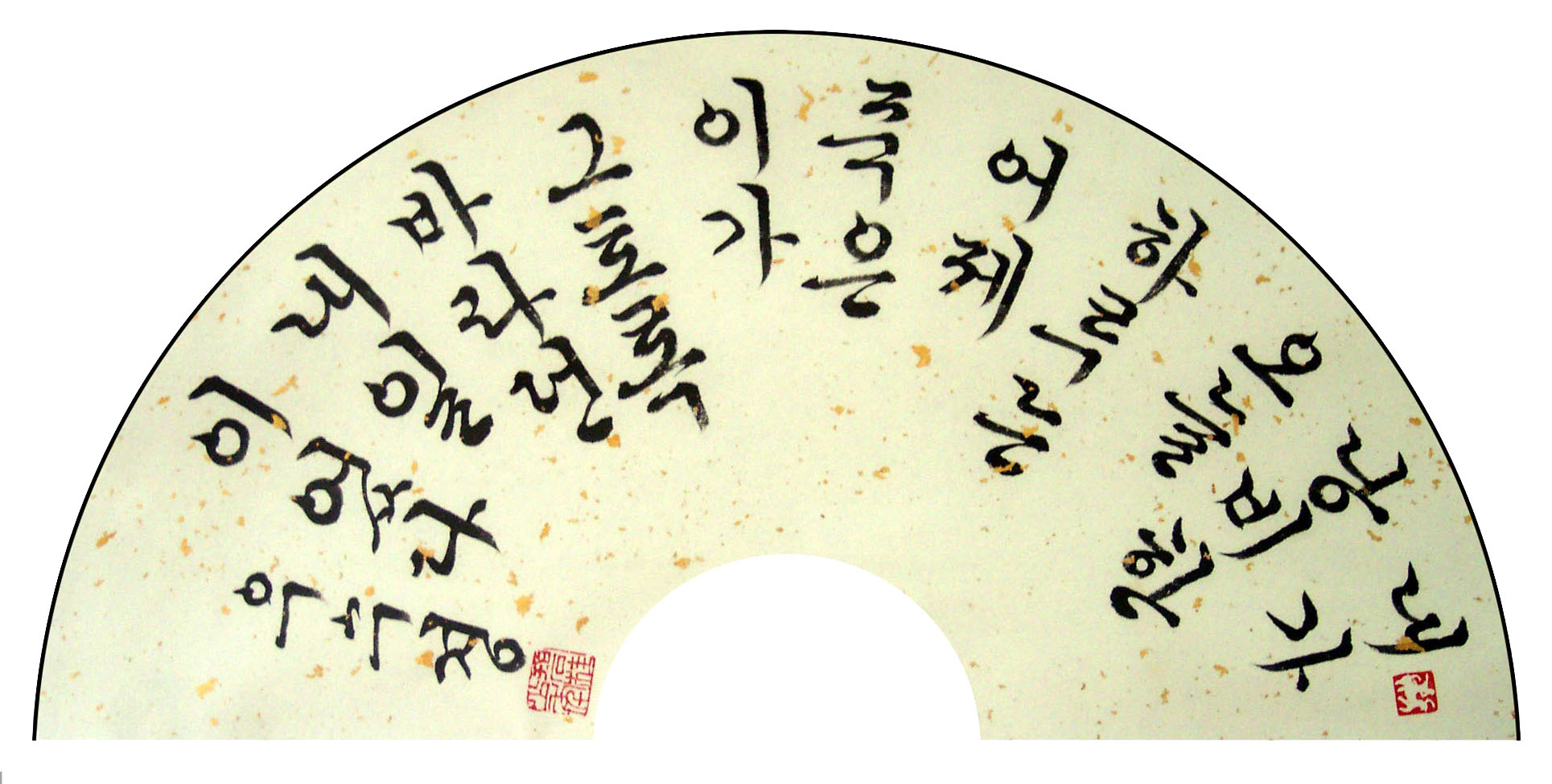 朝鲜时代最伟大的书法家是实学派的金正喜。金正喜是杰出的书法家和学者,他建立了人称“秋史派”的风格。他的书法脱胎于中国隶书,但是他在布局上富于画感,善于在不对称中见和谐,而且笔触有力无比,使笔下的字充满活力。由于这些才能,他终于创造了自己特有的生动有力的风格。