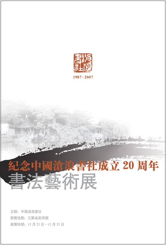 “纪念中国沧浪书社成立20周年书法艺术展”,共展出46位社友一百多件作品,从一个侧面展示今天沧浪同仁的多元的创作理念与多彩的艺术风貌。藉此昭示沧浪人文品位,弘扬沧浪艺术精神,为当今和谐文化建设作出民间书法社团的一份贡献。