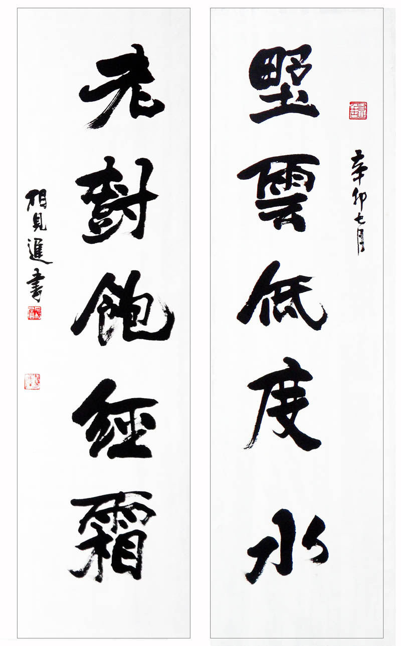 相见迟《野雲低度水 老树饱经霜》横轴 魏碑