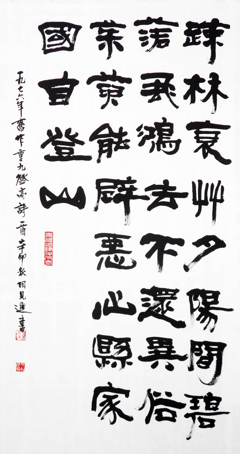 相见迟 《旧作重九登高一首》竖幅 隶书
