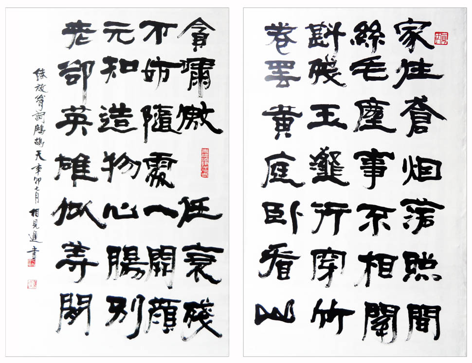 相见迟《宋陆游鹧鸪天词》双屏 隶书