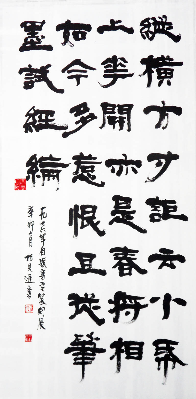 相见迟 《自题书画篆刻展一首》竖幅 隶书