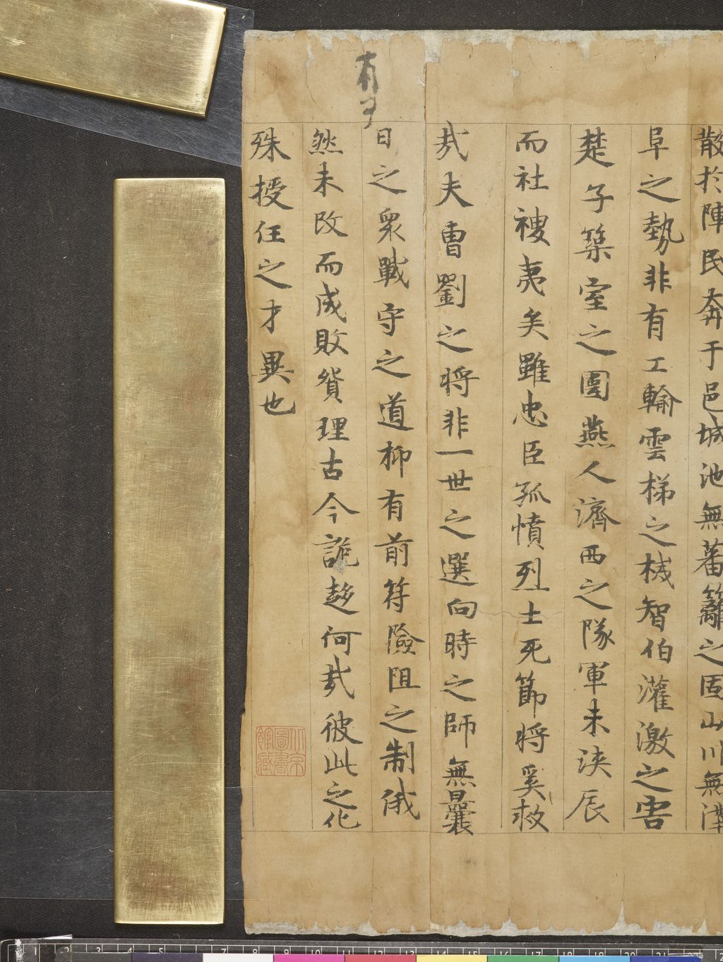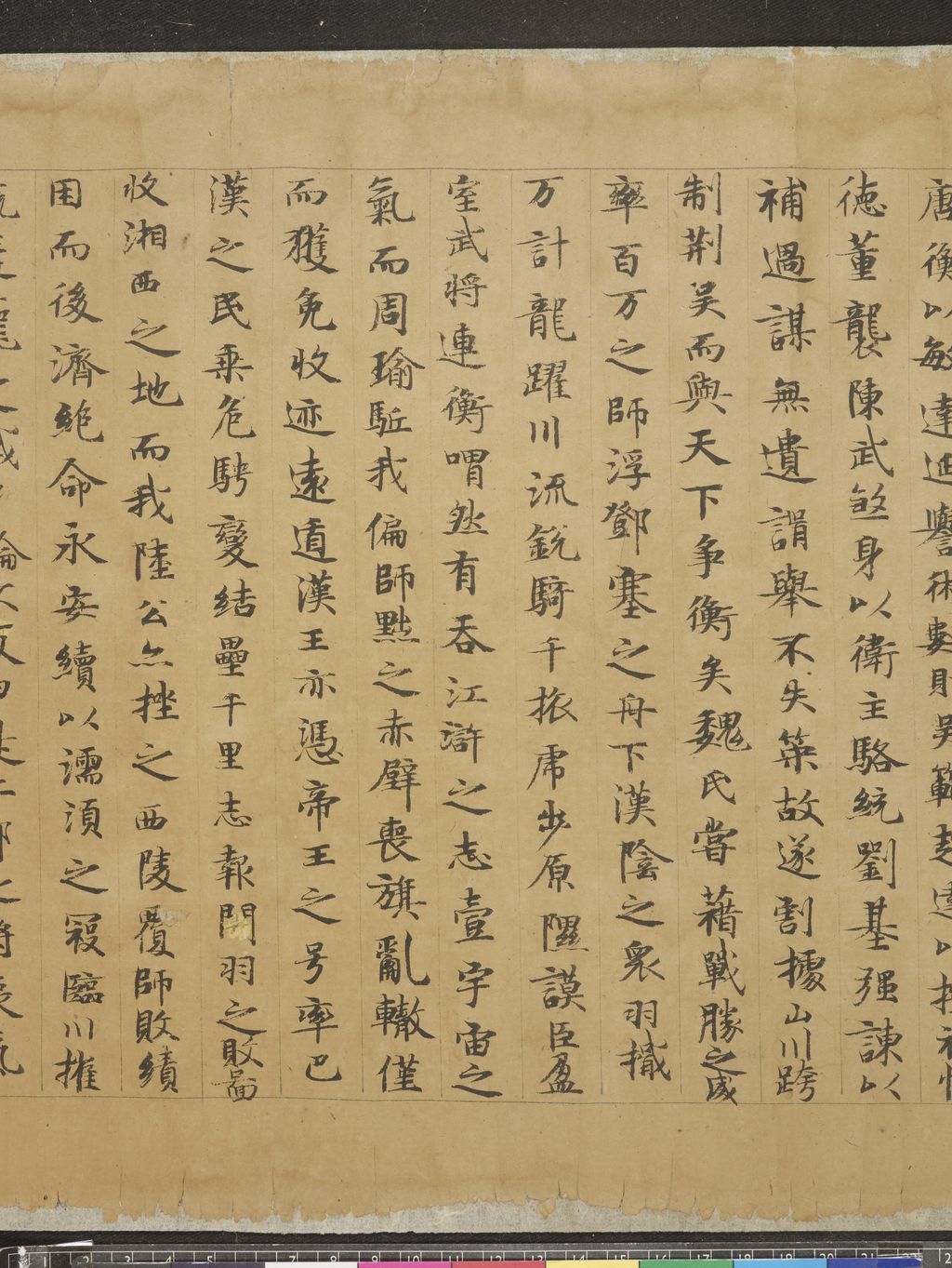 国家图书馆收藏的敦煌遗书中,有幸保存了一卷西晋文学家陆机的《辩亡论》(上篇),黄纸墨书,工楷写就,字体舒朗俊秀,是敦煌唐人写本中的翘楚。