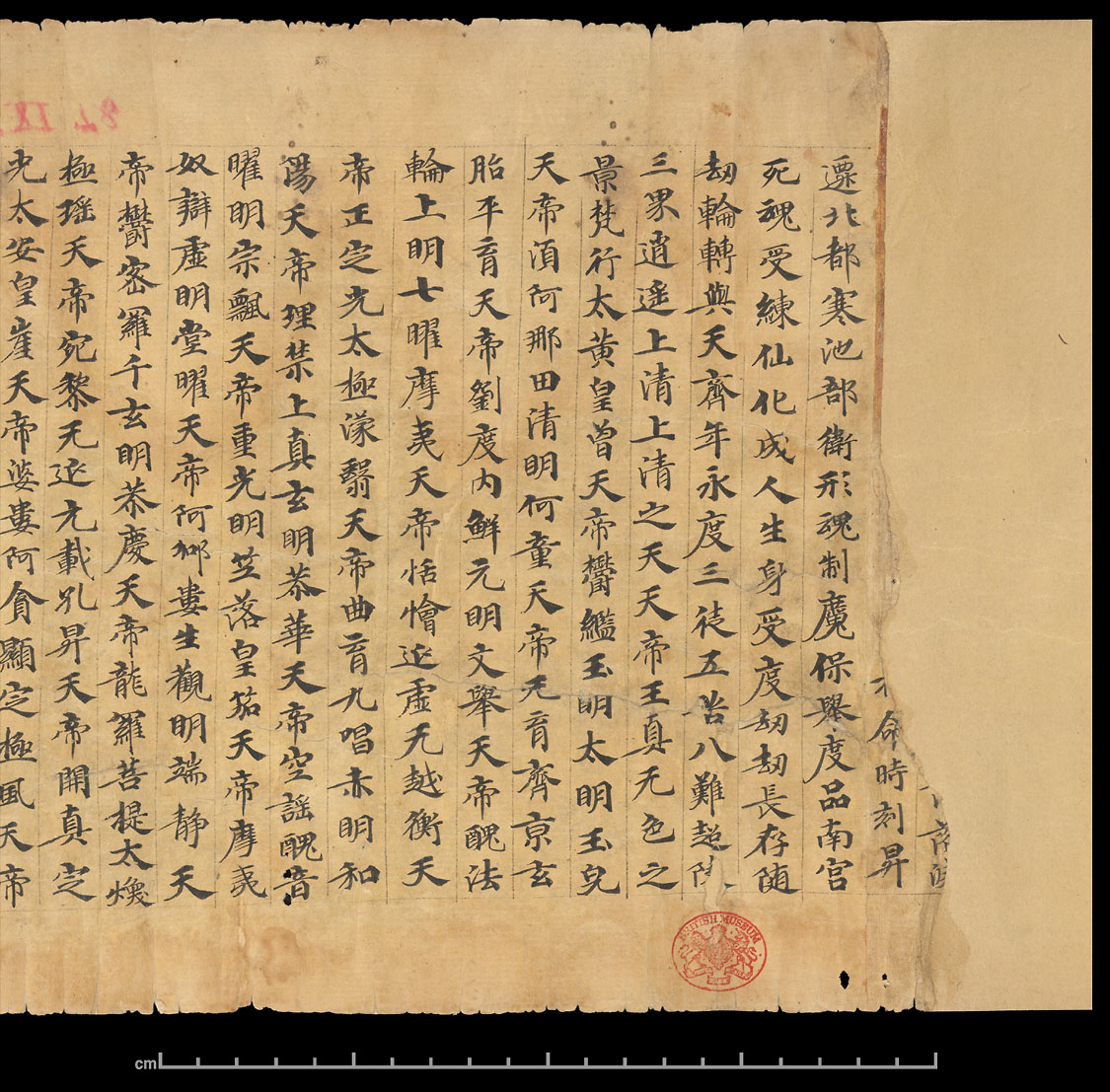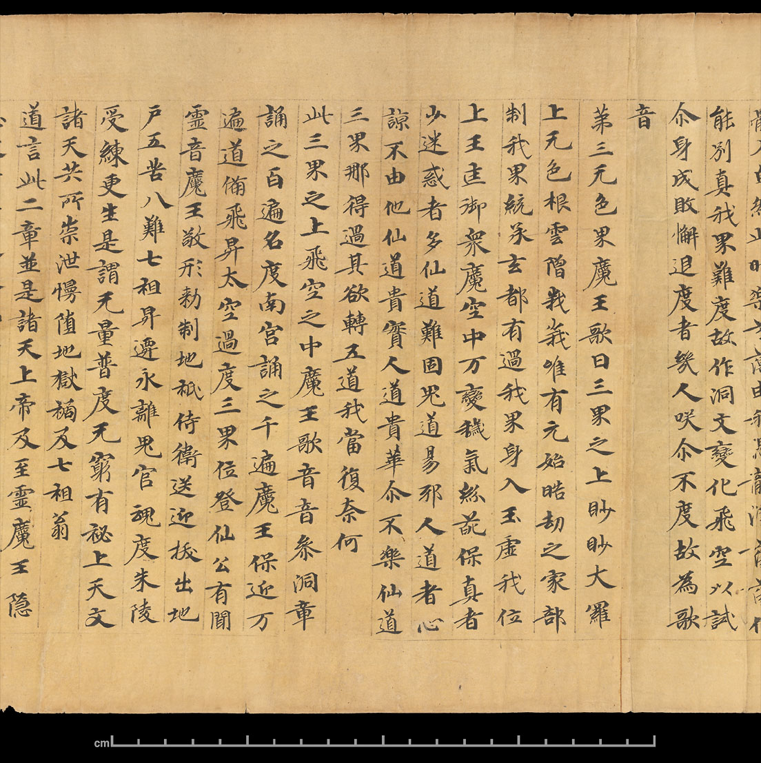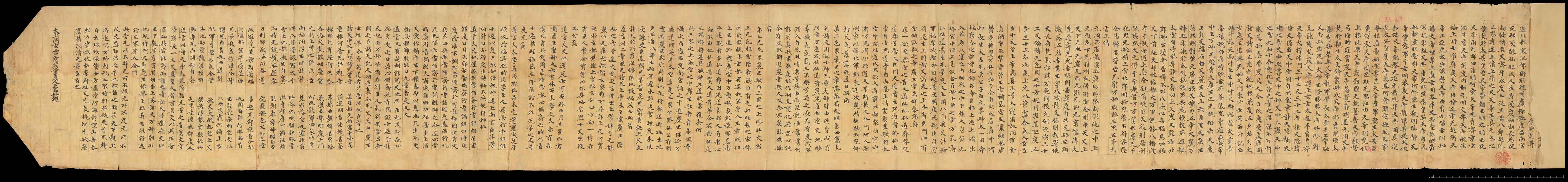 道教经典《太上洞玄灵宝无量度人上品妙经》 纸本,卷轴。25.5 x 243 cm 敦煌。英国大英图书馆藏。