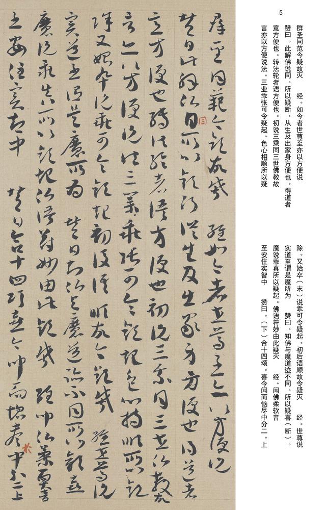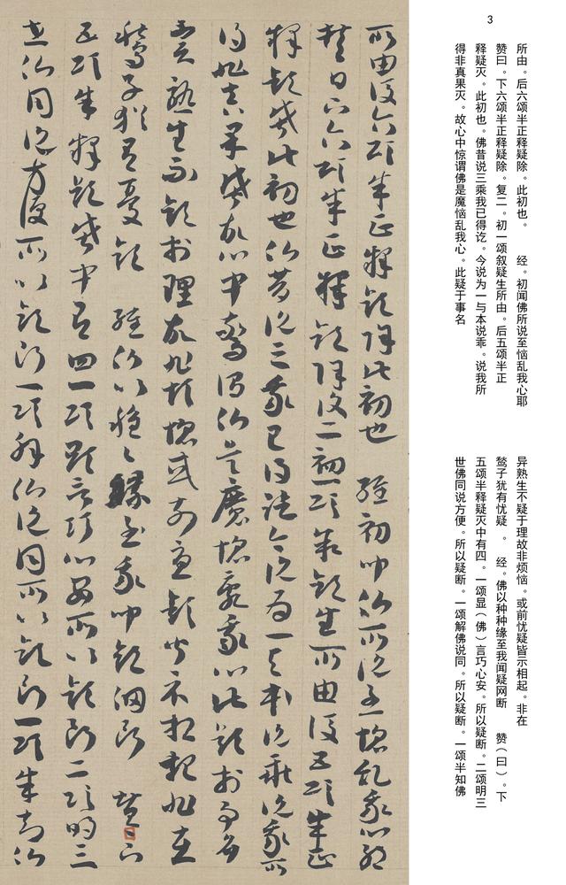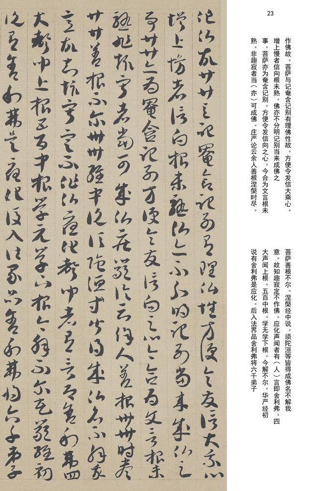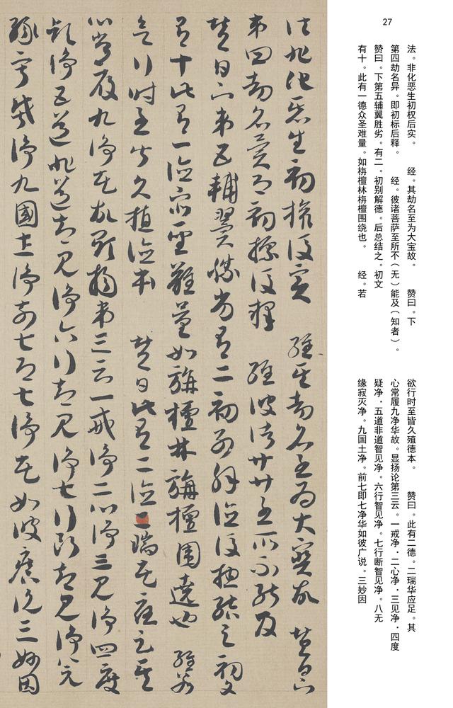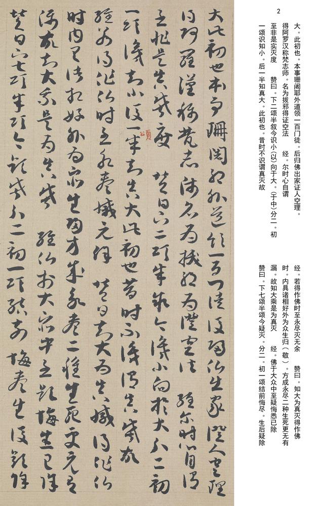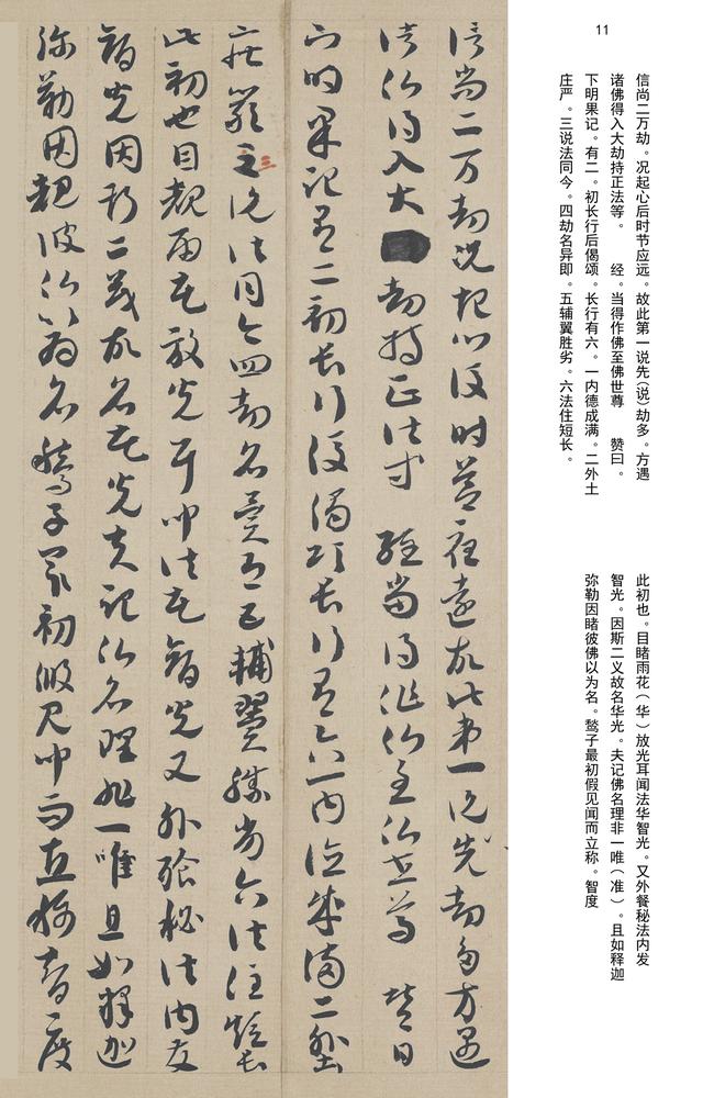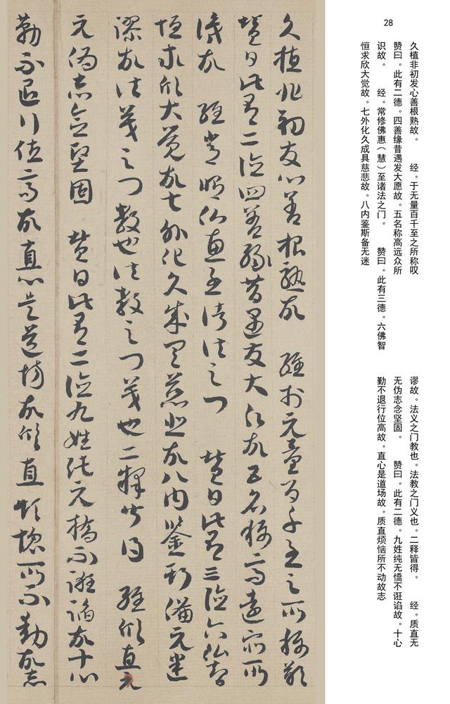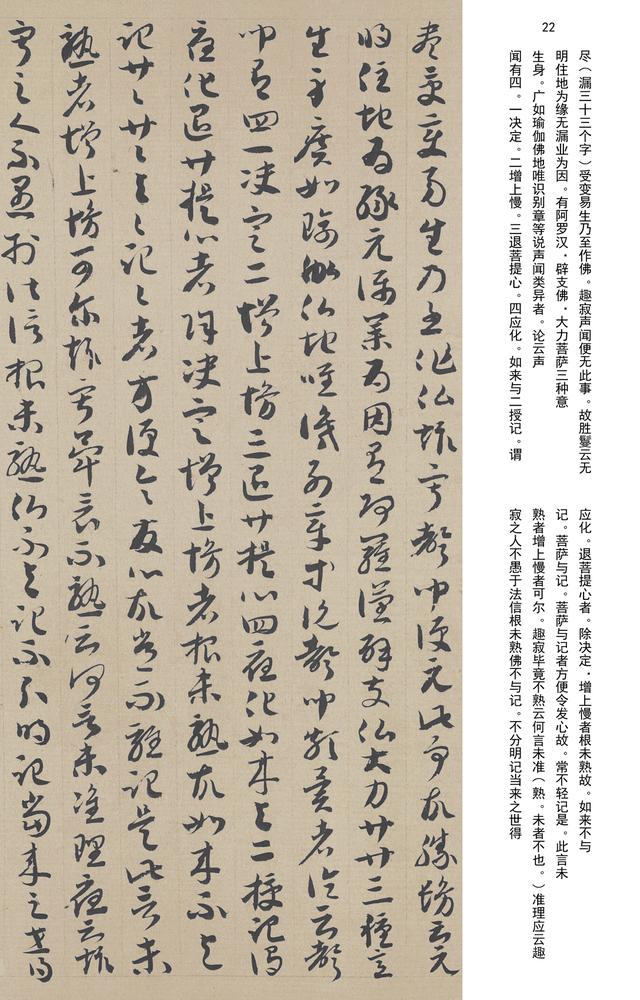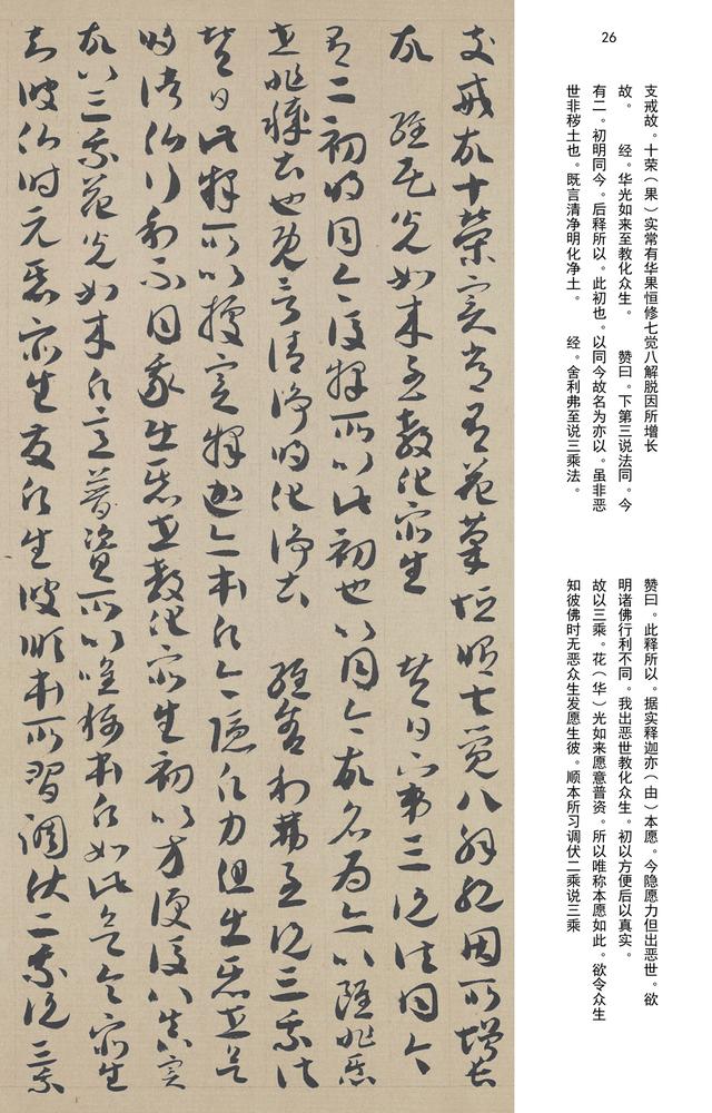 唐人草书墨迹,流传至今的尚有几本。与孙过庭的《书谱序》、贺知章的《孝经》不同,《妙法莲华经玄赞卷》是以纯粹文本的形式出现的,以准确抄录、易于识别为主,并不带“艺术创作”的意图在内。卷中草字个个独立,少有牵带,这种情况,说他带有章草遗轨、或是写经的恭敬心理所致,都不为错。