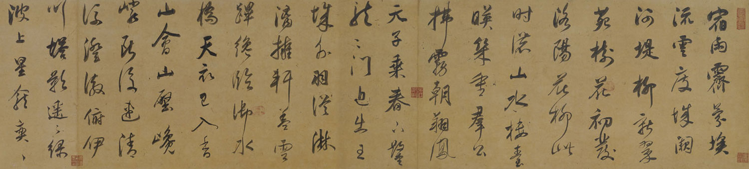 董其昌《行书宋之问诗》卷 金粟山藏经纸 30.9×468.5cm 北京故宫博物院藏