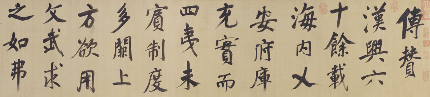 董其昌《仿颜真卿法〈倪宽赞传〉》卷 绢本,行楷书,纵36.8cm,横1579.7cm 北京故宫博物院藏