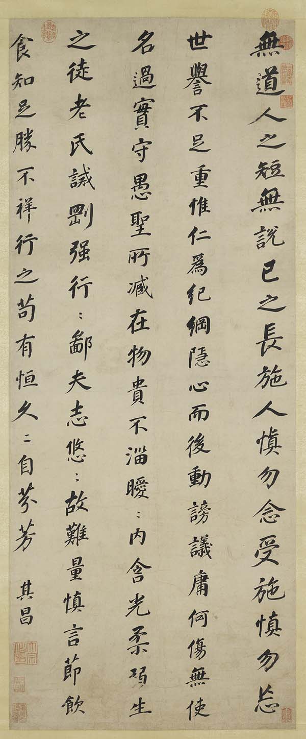 董其昌《楷书崔子玉座右铭轴》纸本楷书 132.5×53.5cm 上海博物馆藏