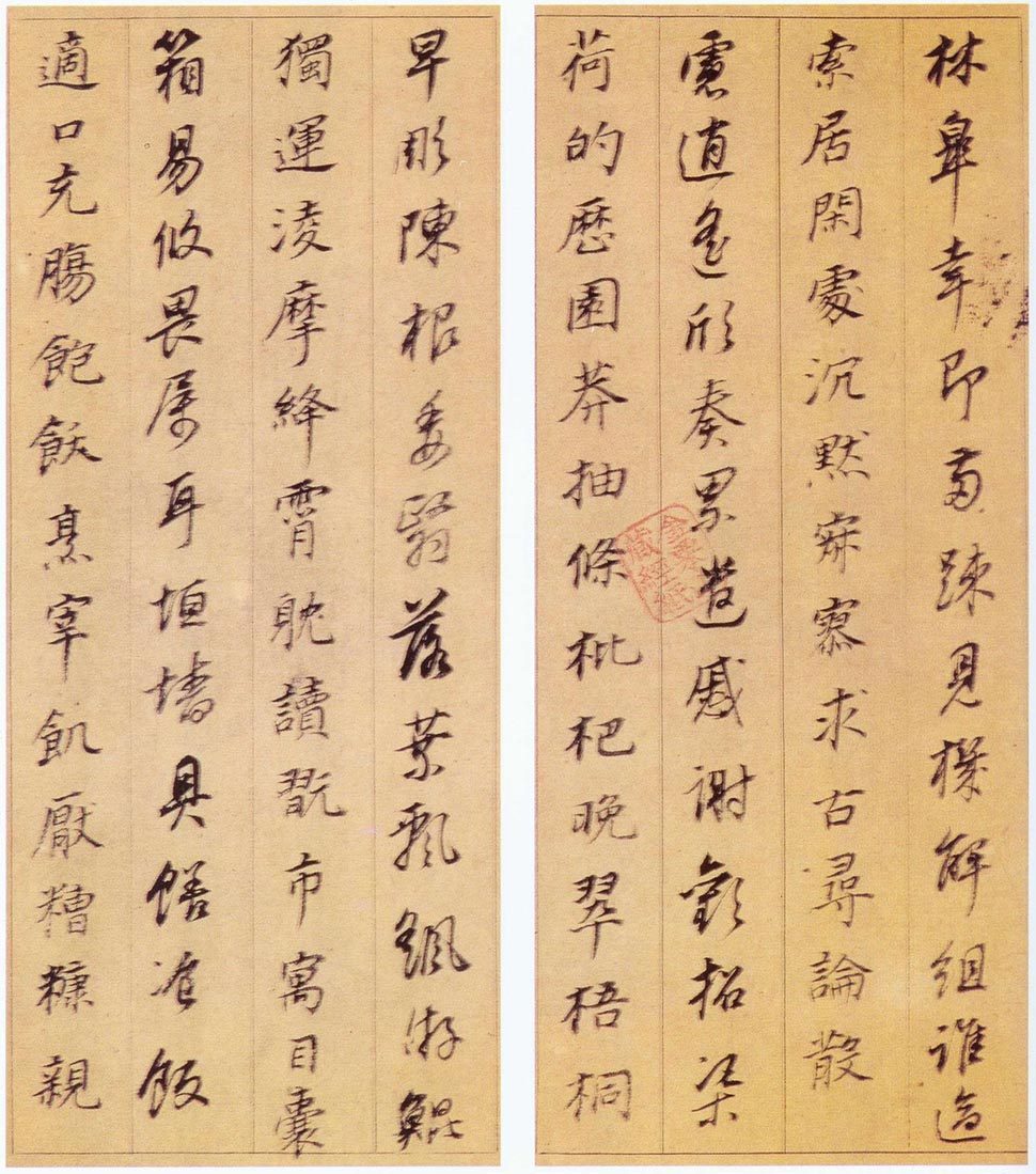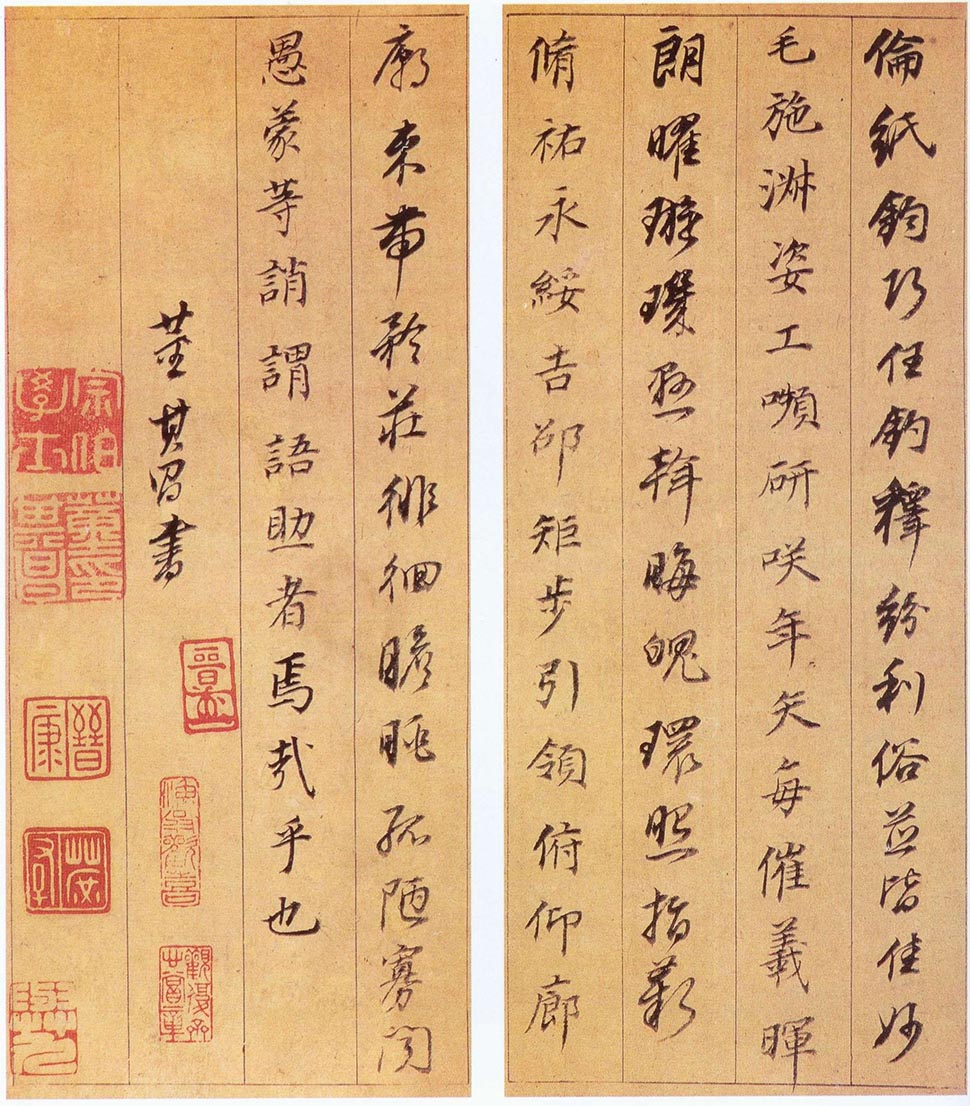 董其昌在此《行楷书千字文》中,通过用笔、用墨精湛技法的掌握,营造出不食人间烟火般的儒雅、幽寂、清和的精神气息,不愧为一代书画巨擘心象的自然流露与映显。