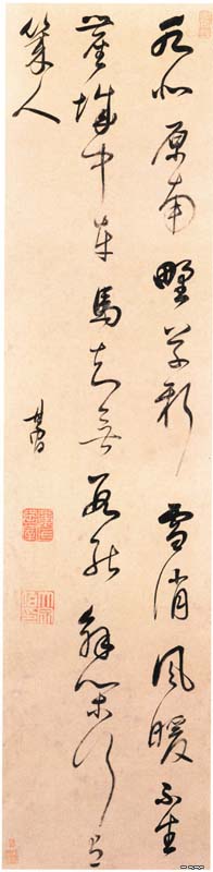 董其昌《书张籍七言诗》轴 草书 金笺,145.1cm×34.7cm 北京故宫博物院藏