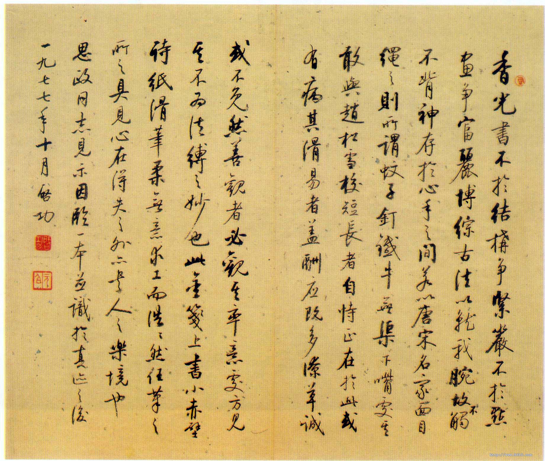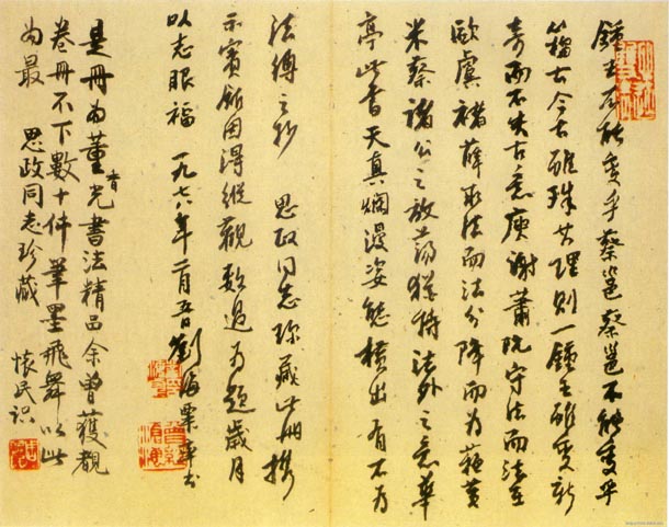 董其昌《小赤壁诗册页》为广东五桂山房欧初私人收藏,刊于广东省书法家协会《书艺》卷四(岭南美术出版社2003年3月出版)。据商承祚题识,此作原为长卷,后为便于阅读改为册页。